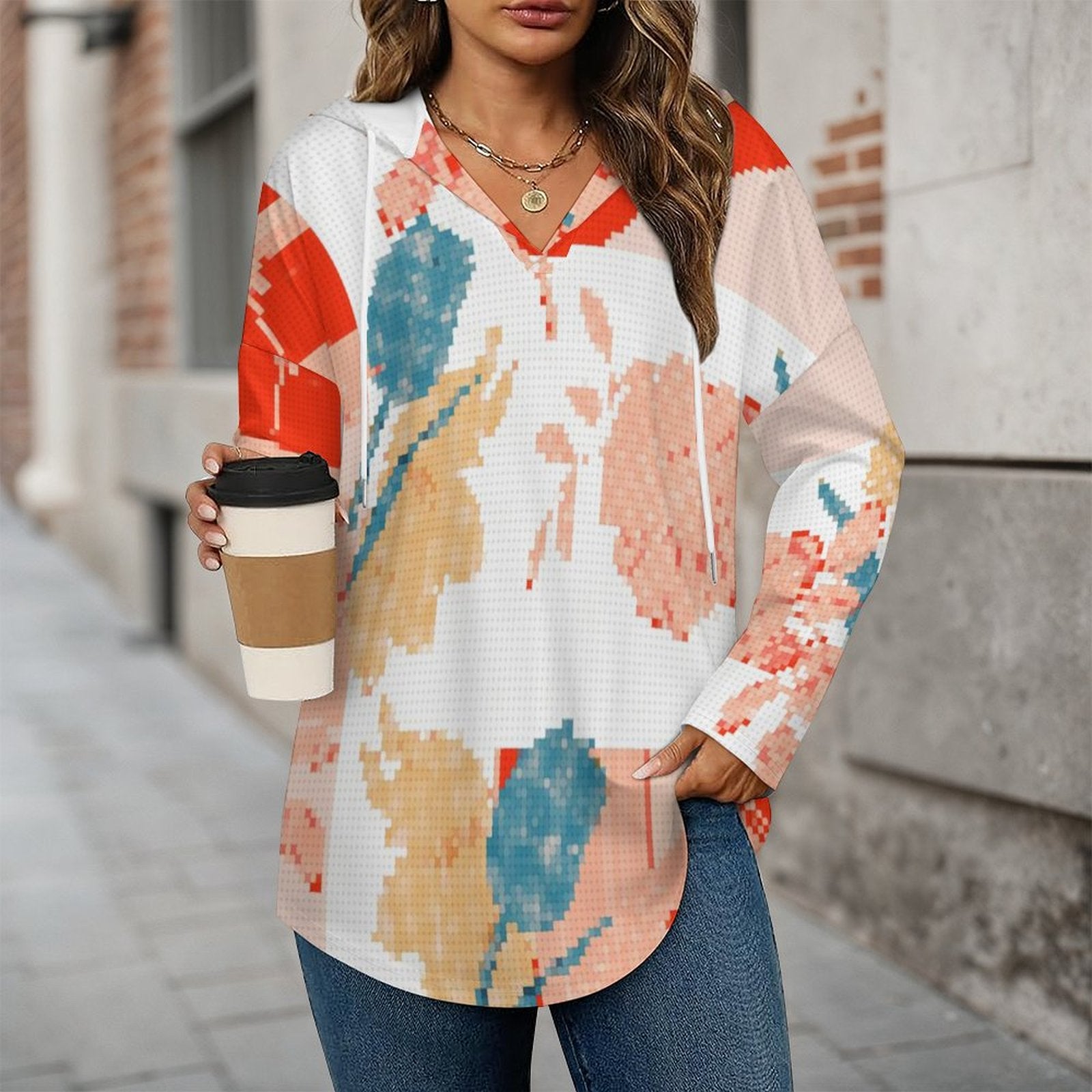 Dì addio alla solita felpa. Abbiamo ripensato un classico del guardaroba casual per offrirti un'esperienza che unisce una comodità assoluta a un'eleganza inaspettata. Questa felpa con scollo a V e cappuccio è progettata per la donna moderna che non vuole scegliere tra sentirsi a proprio agio ed essere alla moda. È la tela perfetta su cui dipingere la tua personalità.