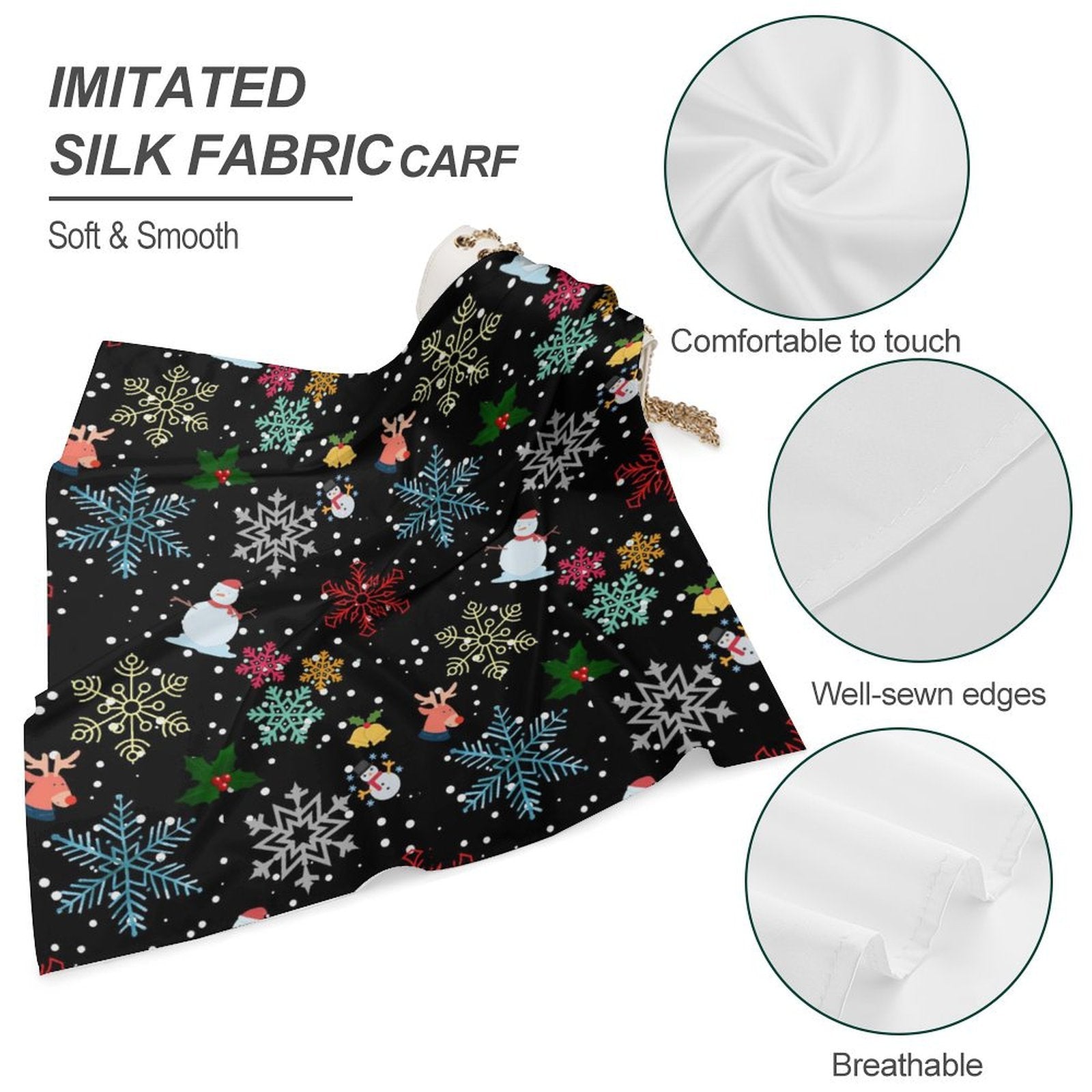 Lasciati avvolgere dalla leggerezza impalpabile e dalla fluidità setosa del nostro foulard quadrato. Realizzato in pregiata simil-seta liscia, questo accessorio è un vero piacere per la pelle: traspirante, confortevole e incredibilmente morbido al tatto. È facile da indossare e da togliere, offrendo un'esperienza di lusso quotidiano.