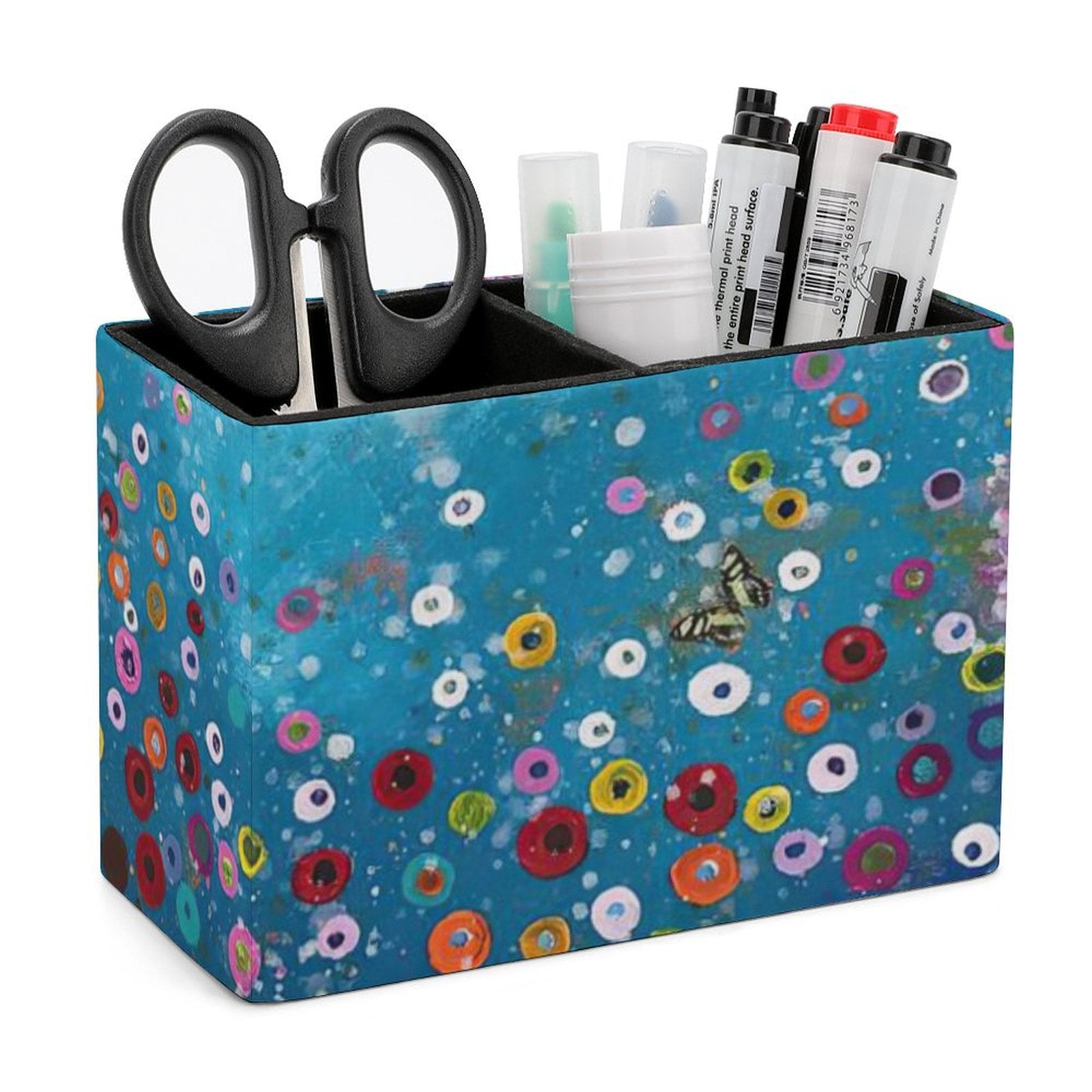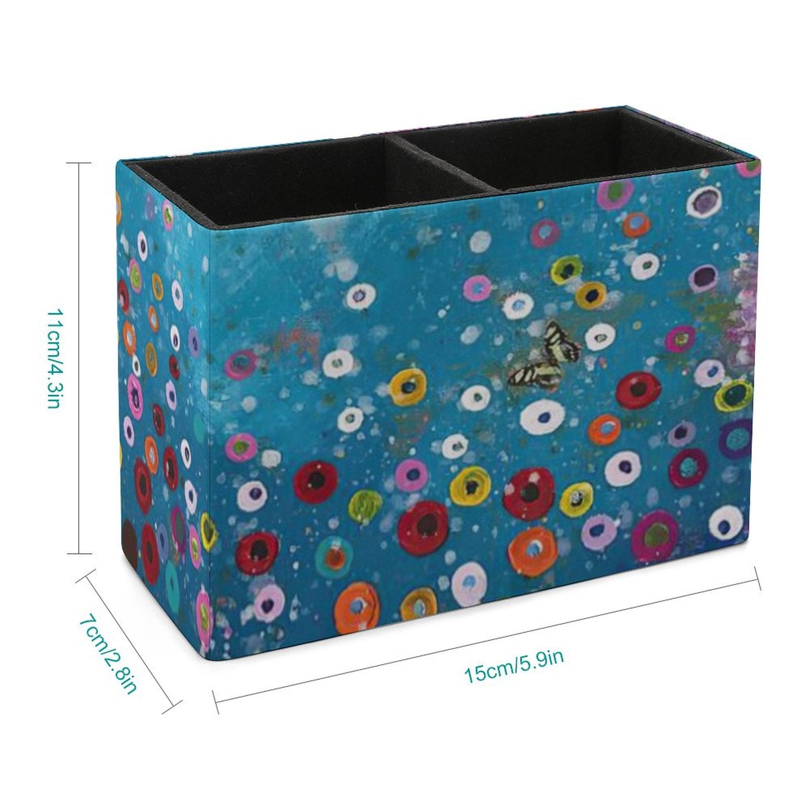 Le sue dimensioni generose (15 x 7 x 11 cm) lo rendono estremamente versatile. Può contenere comodamente penne, matite, evidenziatori, un paio di occhiali, forbici e persino un piccolo blocco note in verticale. -