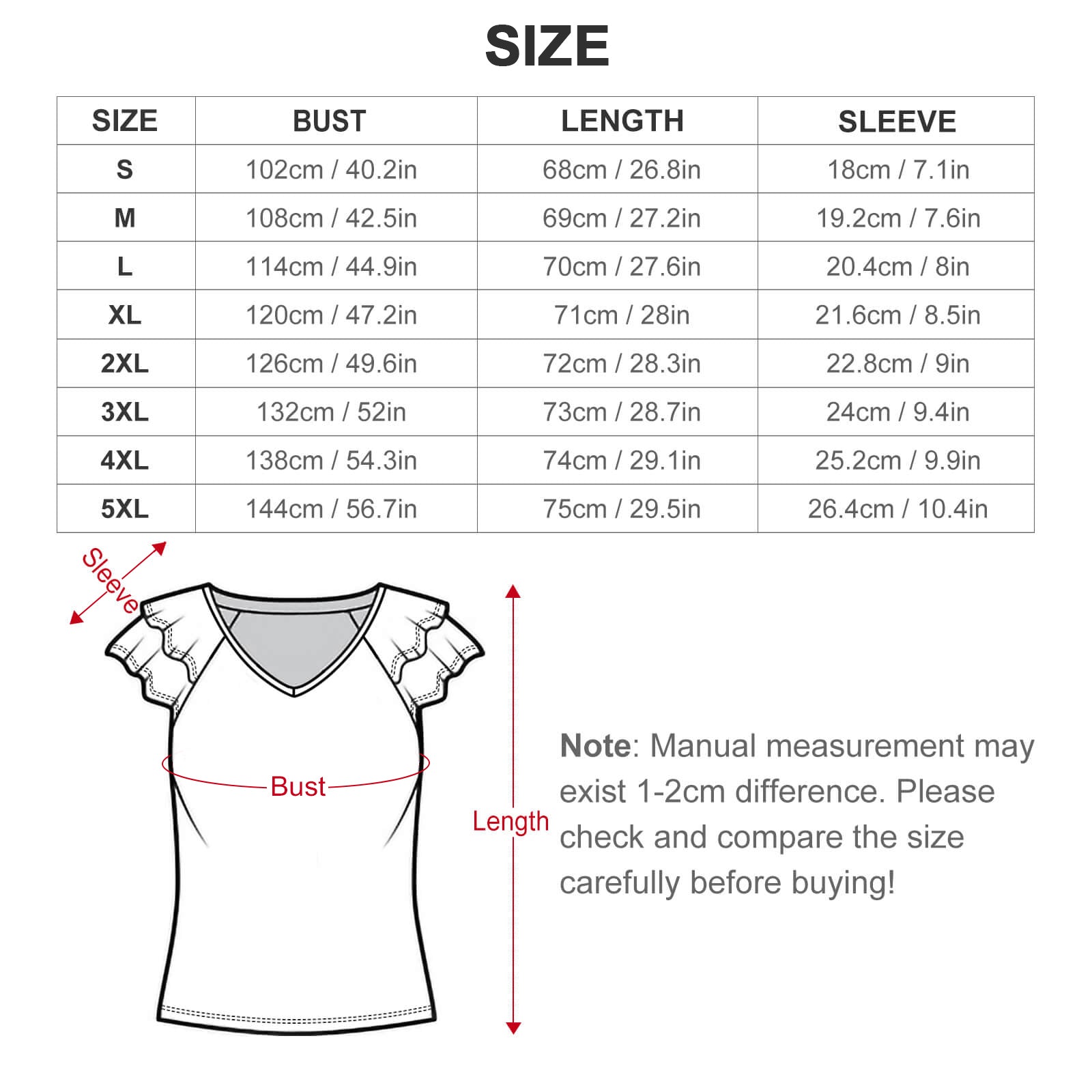 5XL | 144 / 56.7 | 75 / 29.5 | 26.4 / 10.4 |